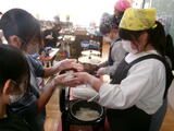 ボランティアに参加してくださった保護者の方と数名の児童は、お米を炊いておにぎりを握ったり、味噌汁を作ったりしました。