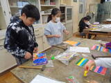 面白い仕掛けを考えて、友達と話し合いながら作品作りをしています♪