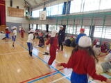1/23 運動委員の企画で1・6年生で昼休みに体を動かしました。今回は反復横跳びの動きを取り入れた運動です。6年生と触れ合いながら、楽しく活動していました。