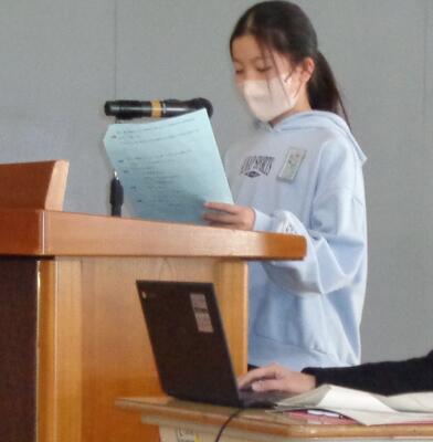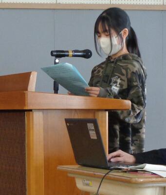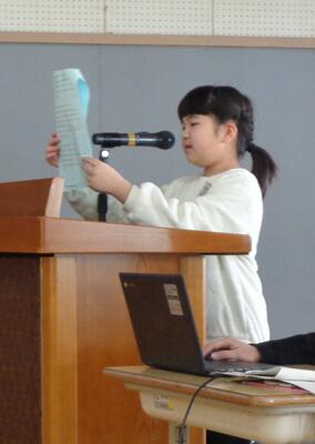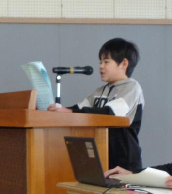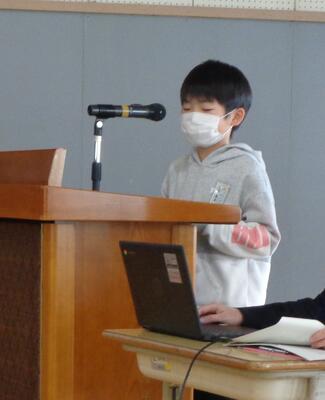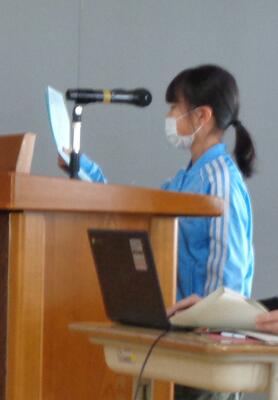 まずは、事前に実施した「心と体についてのアンケート」の結果を、保健委員会の児童が発表しました。