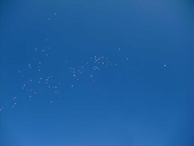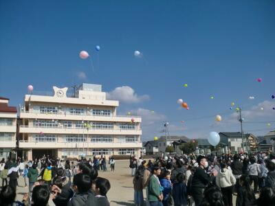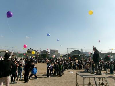 今年度も、6年生を送る会にあわせ、PTAからバルーンリリースの企画をいただきました。ガスを入れた風船100個が用意され、6年生を送る会の最後に様々な思いを込めて一斉にバルーンがリリースされました。6年生との良い思い出となるでしょう。心からの感謝を申し上げます。
