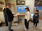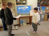 各県の理科研究展覧会から推薦された作品を集めて、全日本児童才能開発コンテストが開催されされました。このコンテストで、6年生が科学部門高学年の部で「文部科学大臣賞」を受賞しました。この日は市長公室で表彰式が行われました。学校にも奨励賞として盾と図鑑10冊が寄贈されました。